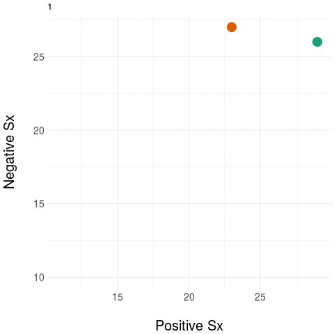 As an example, take two people at baseline and then measure only their positive and negative symptom load (using the PANSS instrument). Repeat these measurements during treatment.